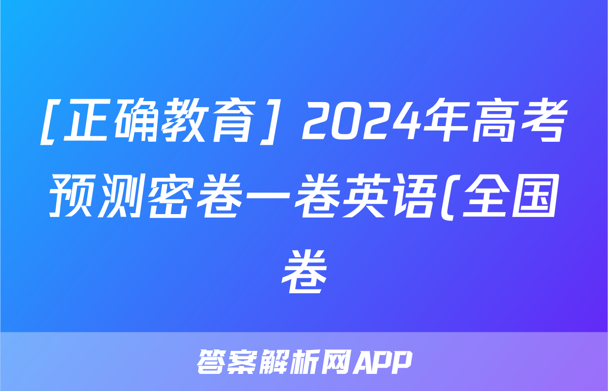 [正确教育] 2024年高考预测密卷一卷英语(全国卷)答案正在持续更新,目前2026卷行天下答案网为大家整理了相关试题及答案,供大家查缺补漏,高效提升成绩。