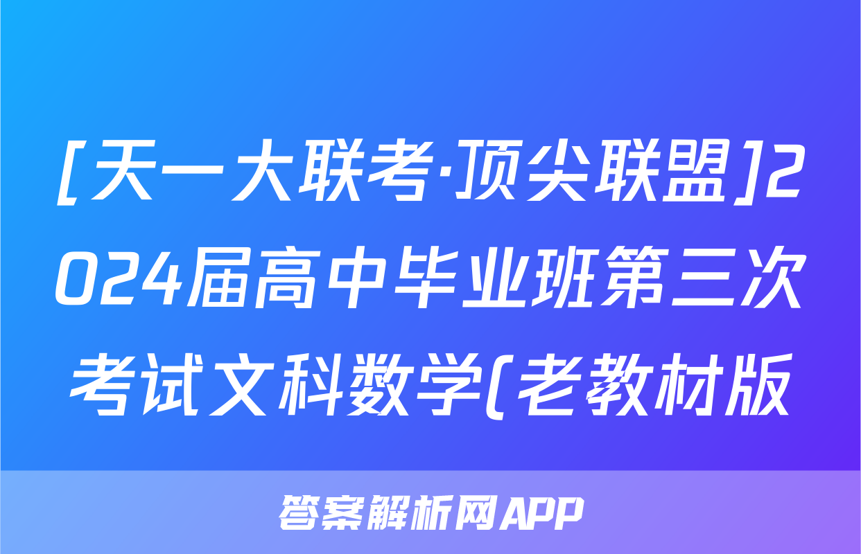 [天一大联考·顶尖联盟]2024届高中毕业班第三次考试文科数学(老教材版)答案正在持续更新,目前2026卷行天下答案网为大家整理了相关试题及答案,供大家查缺补漏,高效提升成绩。