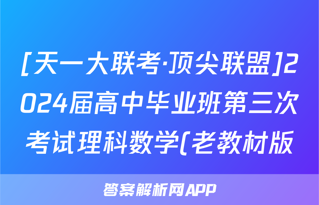 [天一大联考·顶尖联盟]2024届高中毕业班第三次考试理科数学(老教材版)答案正在持续更新,目前2026卷行天下答案网为大家整理了相关试题及答案,供大家查缺补漏,高效提升成绩。