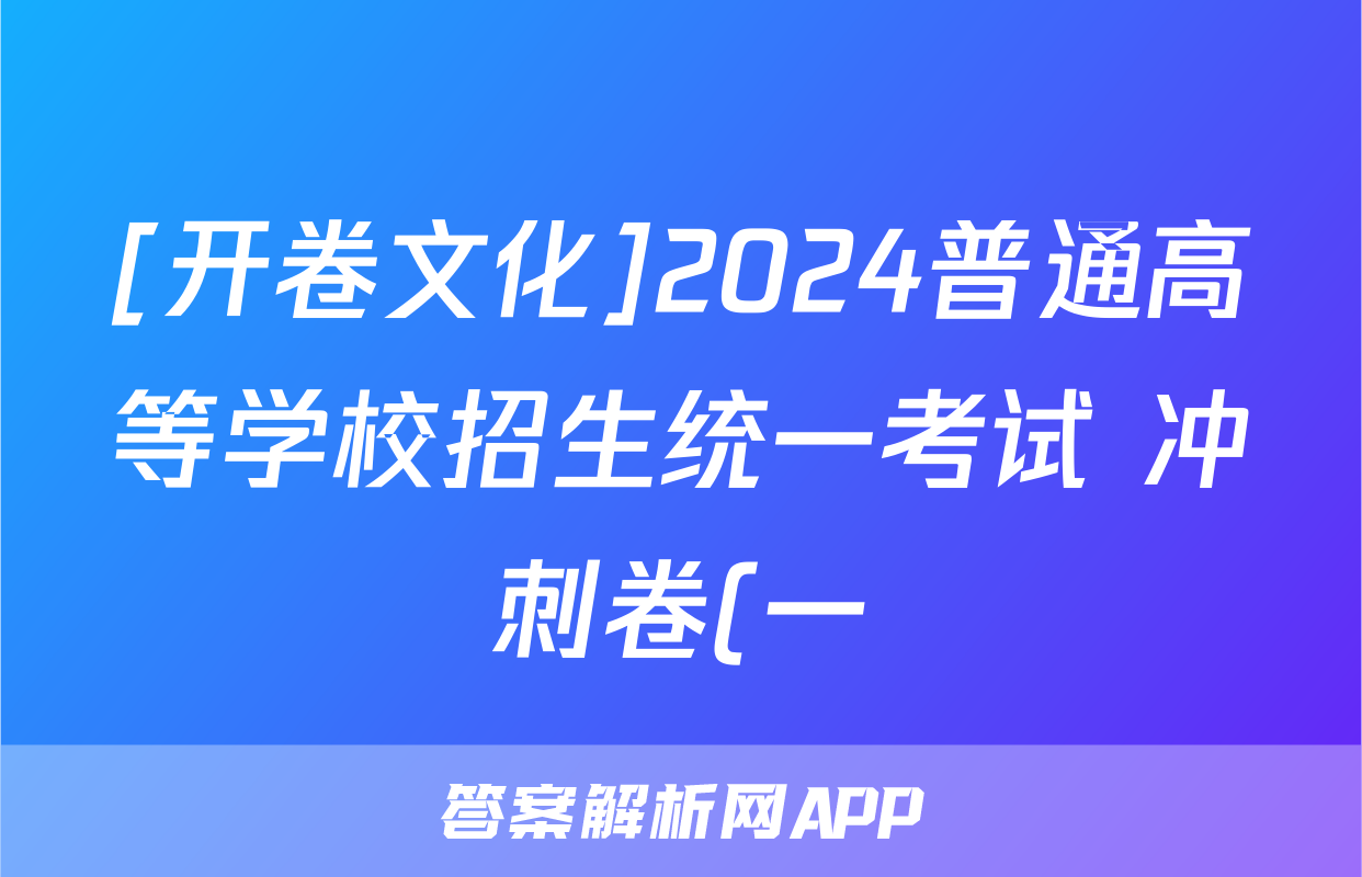 [开卷文化]2024普通高等学校招生统一考试 冲刺卷(一)1数学(HN)答案正在持续更新,目前2026卷行天下答案网为大家整理了相关试题及答案,供大家查缺补漏,高效提升成绩。