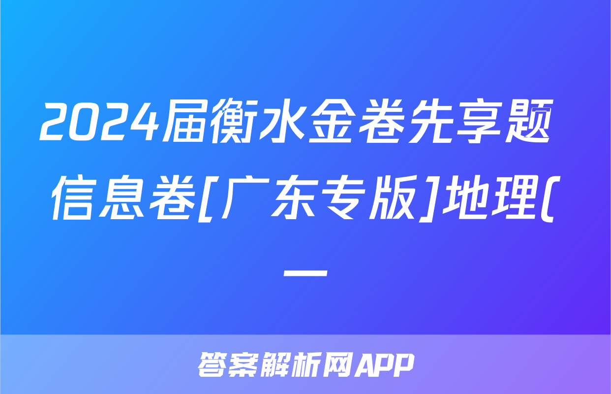 2024届衡水金卷先享题 信息卷[广东专版]地理(一)1答案正在持续更新,目前2026卷行天下答案网为大家整理了相关试题及答案,供大家查缺补漏,高效提升成绩。