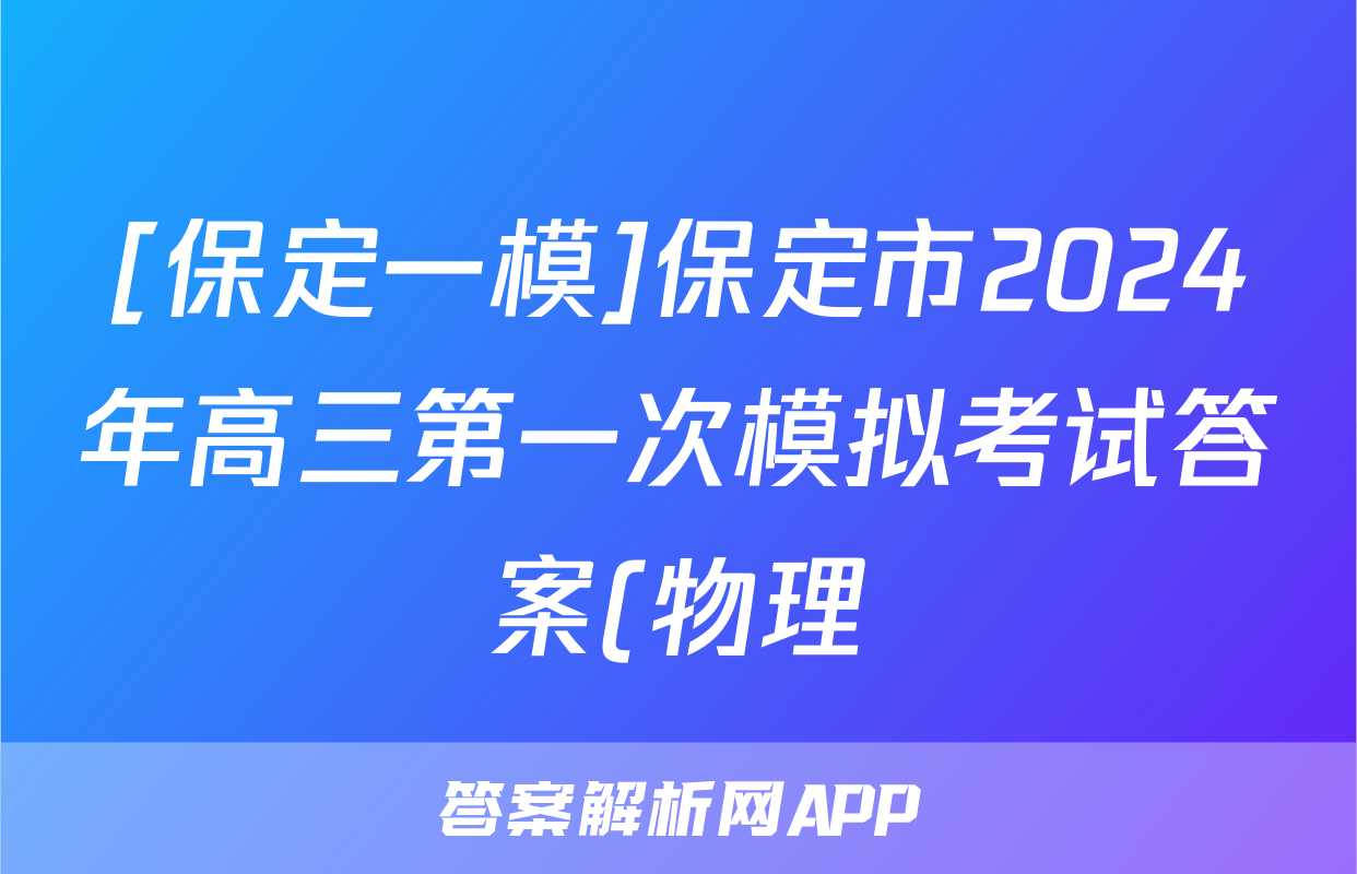 [保定一模]保定市2024年高三第一次模拟考试答案(物理)正在持续更新,目前2026卷行天下答案网为大家整理了相关试题及答案,供大家查缺补漏,高效提升成绩。