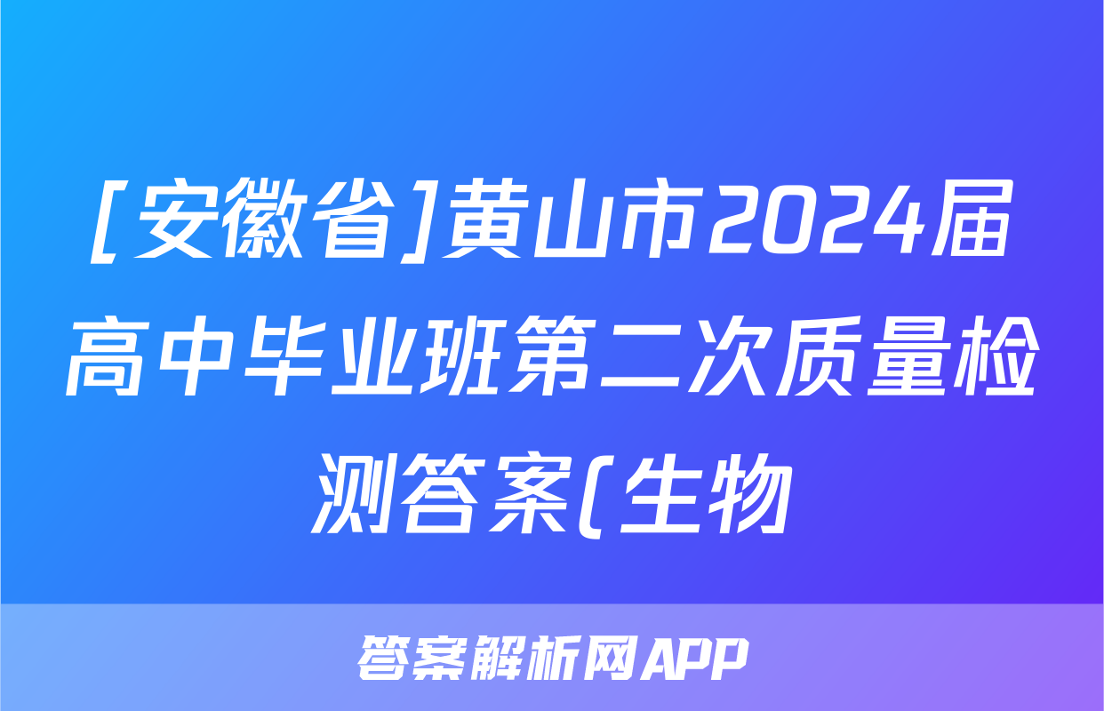 [安徽省]黄山市2024届高中毕业班第二次质量检测答案(生物)正在持续更新,目前2026卷行天下答案网为大家整理了相关试题及答案,供大家查缺补漏,高效提升成绩。