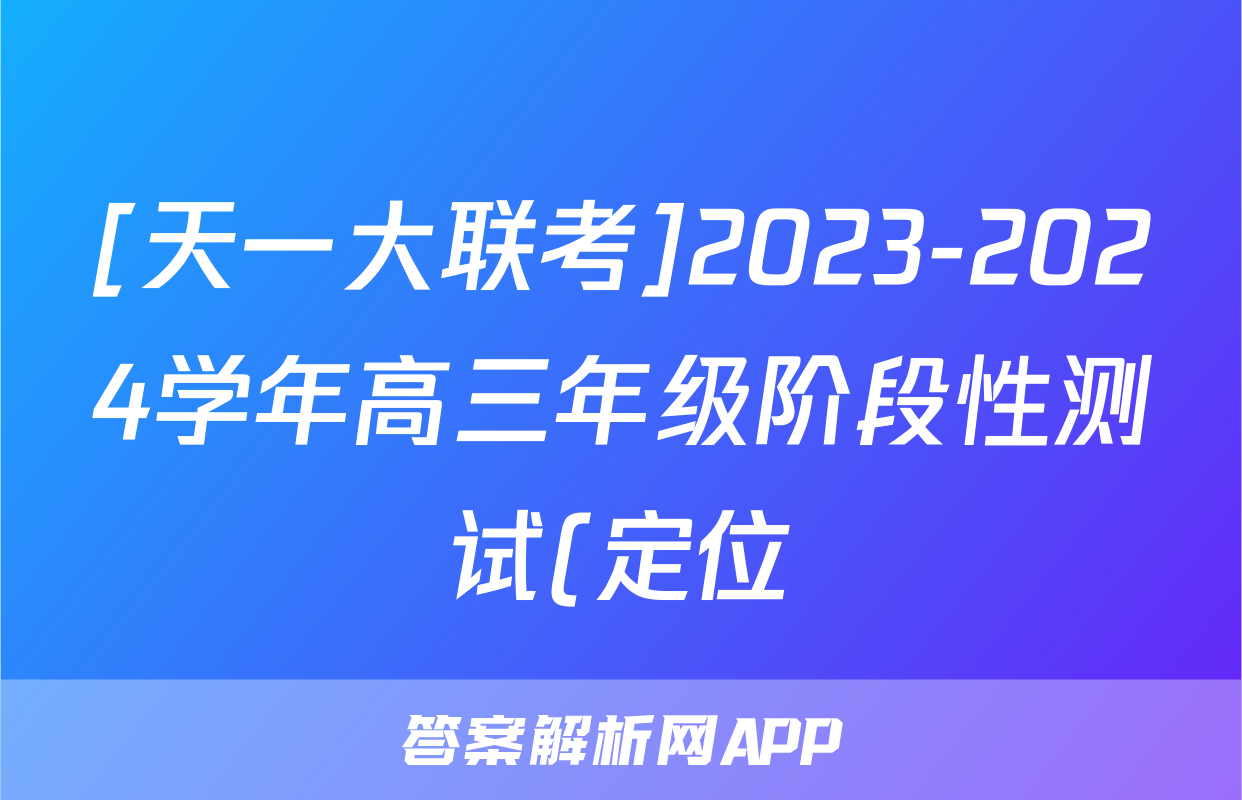 [天一大联考]2023-2024学年高三年级阶段性测试(定位)试题(物理)正在持续更新,目前2026卷行天下答案网为大家整理了相关试题及答案,供大家查缺补漏,高效提升成绩。