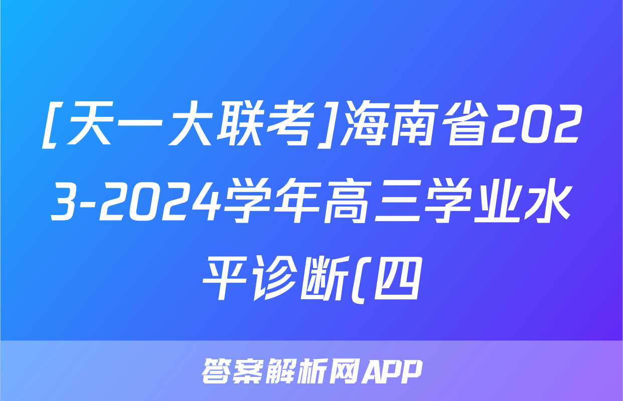[天一大联考]海南省2023-2024学年高三学业水平诊断(四)4试题(地理)正在持续更新,目前2026卷行天下答案网为大家整理了相关试题及答案,供大家查缺补漏,高效提升成绩。