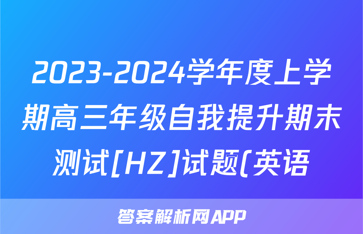 2023-2024学年度上学期高三年级自我提升期末测试[HZ]试题(英语)正在持续更新,目前2026卷行天下答案网为大家整理了相关试题及答案,供大家查缺补漏,高效提升成绩。