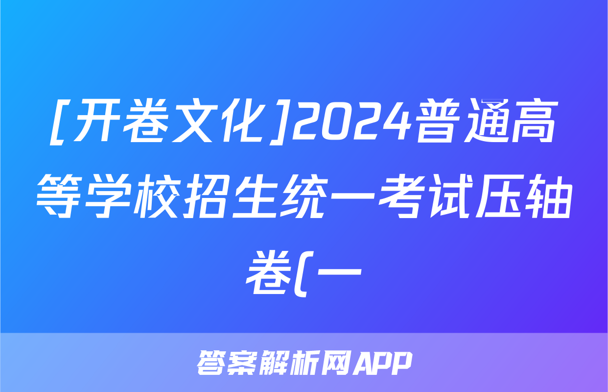 [开卷文化]2024普通高等学校招生统一考试压轴卷(一)1试题(数学)正在持续更新,目前2026卷行天下答案网为大家整理了相关试题及答案,供大家查缺补漏,高效提升成绩。