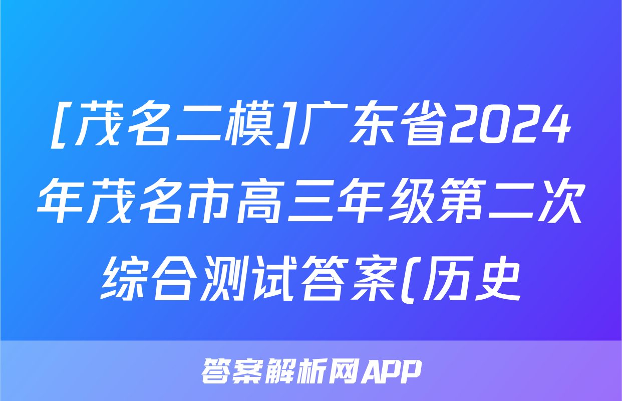 [茂名二模]广东省2024年茂名市高三年级第二次综合测试答案(历史)正在持续更新,目前2026卷行天下答案网为大家整理了相关试题及答案,供大家查缺补漏,高效提升成绩。