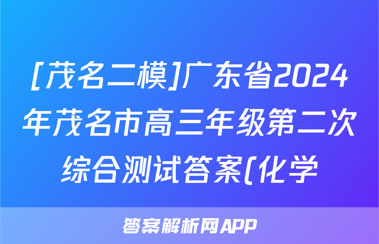 [茂名二模]广东省2024年茂名市高三年级第二次综合测试答案(化学)正在持续更新,目前2026卷行天下答案网为大家整理了相关试题及答案,供大家查缺补漏,高效提升成绩。