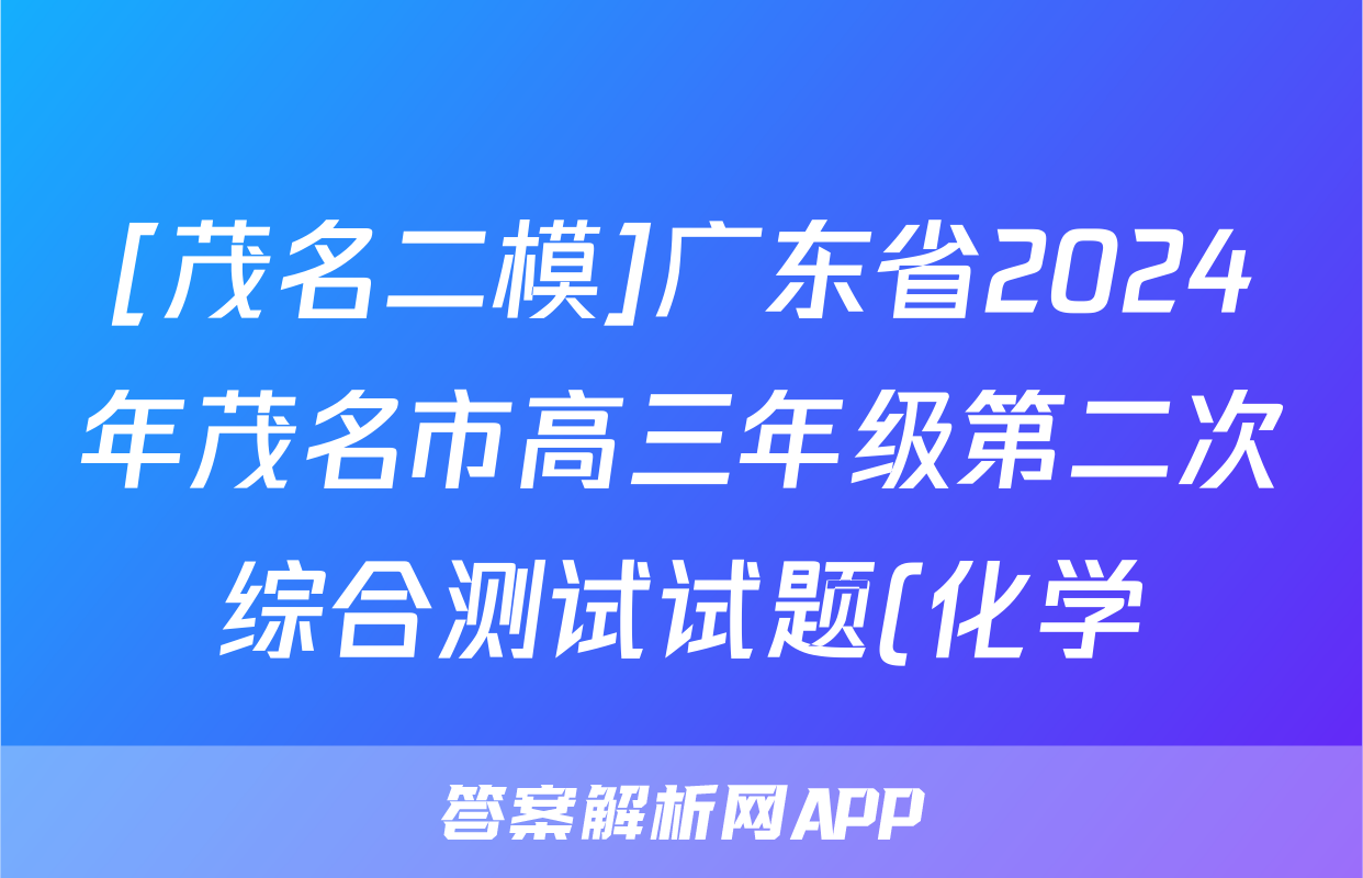 [茂名二模]广东省2024年茂名市高三年级第二次综合测试试题(化学)正在持续更新,目前2026卷行天下答案网为大家整理了相关试题及答案,供大家查缺补漏,高效提升成绩。