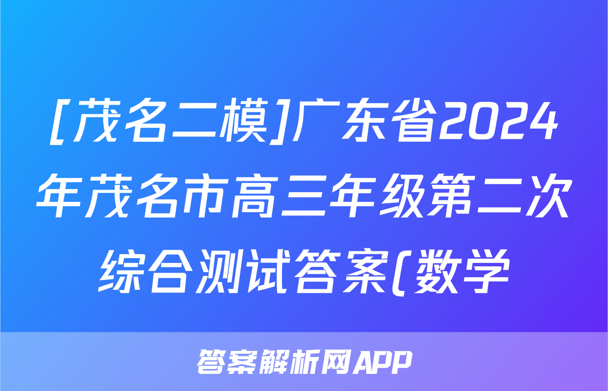 [茂名二模]广东省2024年茂名市高三年级第二次综合测试答案(数学)正在持续更新,目前2026卷行天下答案网为大家整理了相关试题及答案,供大家查缺补漏,高效提升成绩。