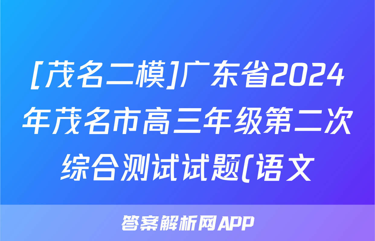 [茂名二模]广东省2024年茂名市高三年级第二次综合测试试题(语文)正在持续更新,目前2026卷行天下答案网为大家整理了相关试题及答案,供大家查缺补漏,高效提升成绩。