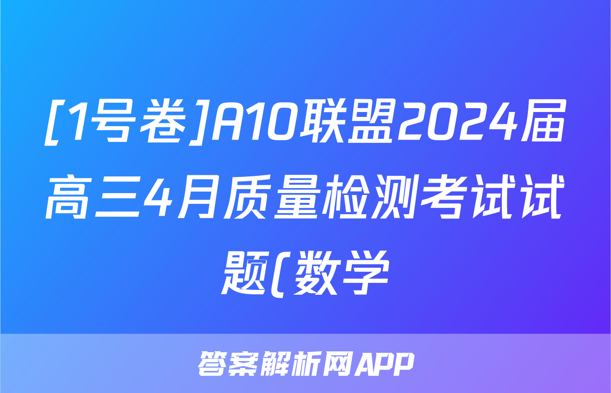 [1号卷]A10联盟2024届高三4月质量检测考试试题(数学)正在持续更新,目前2026卷行天下答案网为大家整理了相关试题及答案,供大家查缺补漏,高效提升成绩。