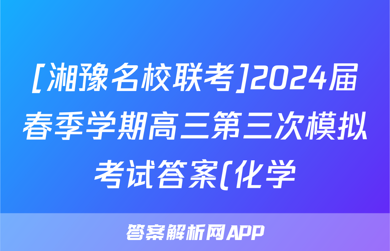 [湘豫名校联考]2024届春季学期高三第三次模拟考试答案(化学)正在持续更新,目前2026卷行天下答案网为大家整理了相关试题及答案,供大家查缺补漏,高效提升成绩。