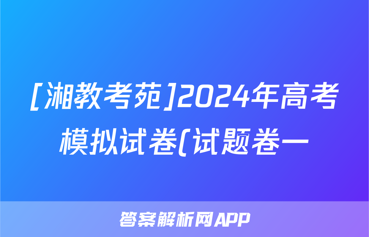 [湘教考苑]2024年高考模拟试卷(试题卷一)答案(物理)正在持续更新,目前2026卷行天下答案网为大家整理了相关试题及答案,供大家查缺补漏,高效提升成绩。