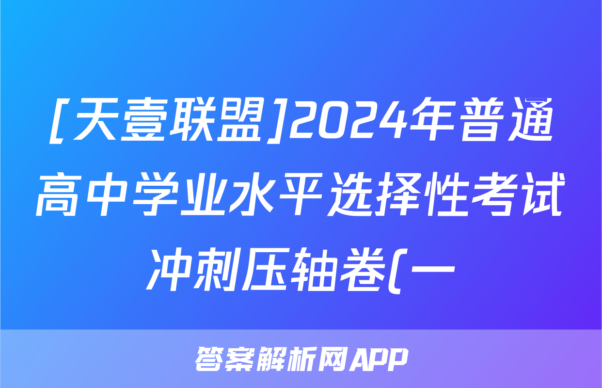 [天壹联盟]2024年普通高中学业水平选择性考试冲刺压轴卷(一)1答案(数学)正在持续更新,目前2026卷行天下答案网为大家整理了相关试题及答案,供大家查缺补漏,高效提升成绩。
