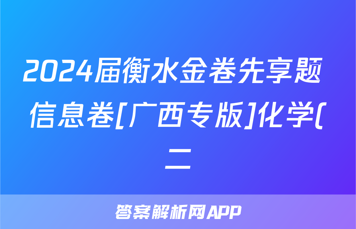 2024届衡水金卷先享题 信息卷[广西专版]化学(二)2答案正在持续更新,目前2026卷行天下答案网为大家整理了相关试题及答案,供大家查缺补漏,高效提升成绩。
