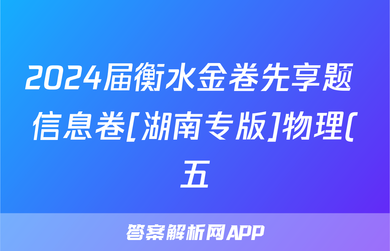 2024届衡水金卷先享题 信息卷[湖南专版]物理(五)5试题正在持续更新,目前2026卷行天下答案网为大家整理了相关试题及答案,供大家查缺补漏,高效提升成绩。