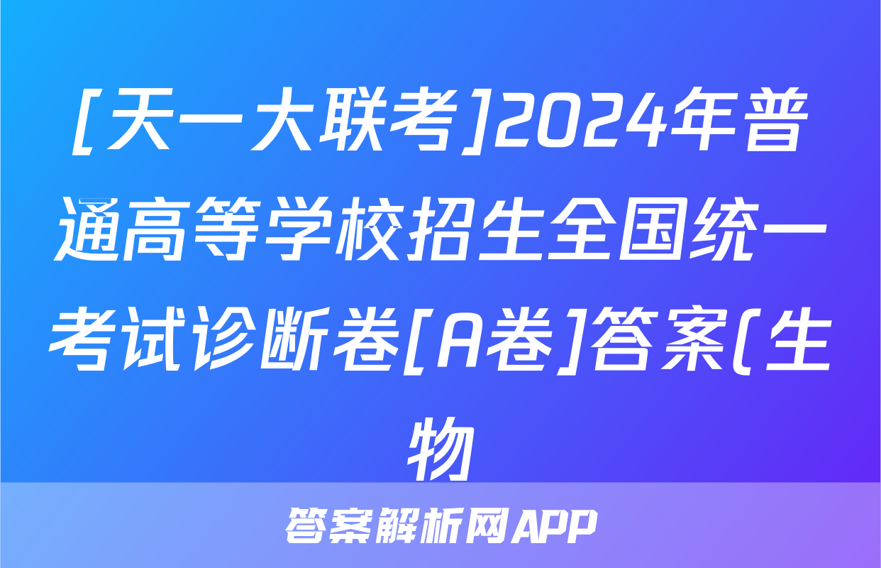 [天一大联考]2024年普通高等学校招生全国统一考试诊断卷[A卷]答案(生物)正在持续更新,目前2026卷行天下答案网为大家整理了相关试题及答案,供大家查缺补漏,高效提升成绩。