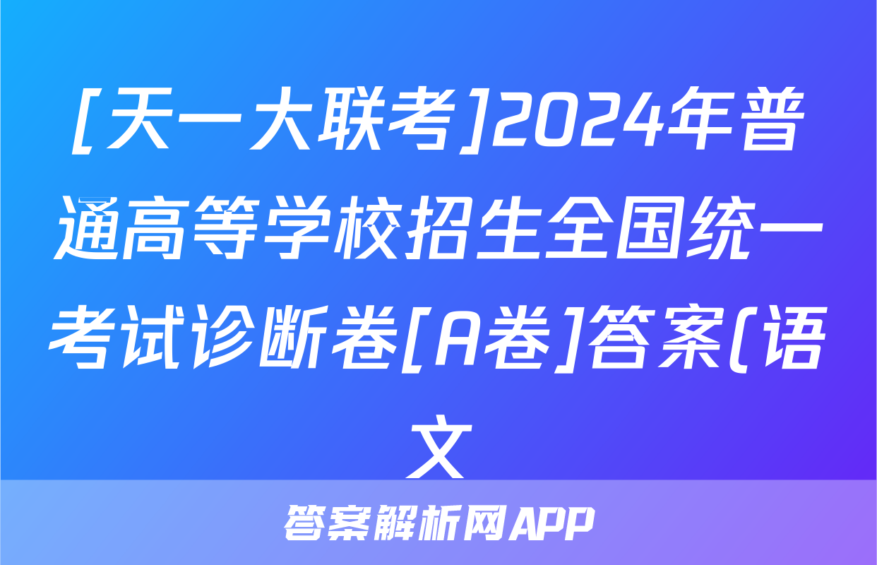 [天一大联考]2024年普通高等学校招生全国统一考试诊断卷[A卷]答案(语文)正在持续更新,目前2026卷行天下答案网为大家整理了相关试题及答案,供大家查缺补漏,高效提升成绩。