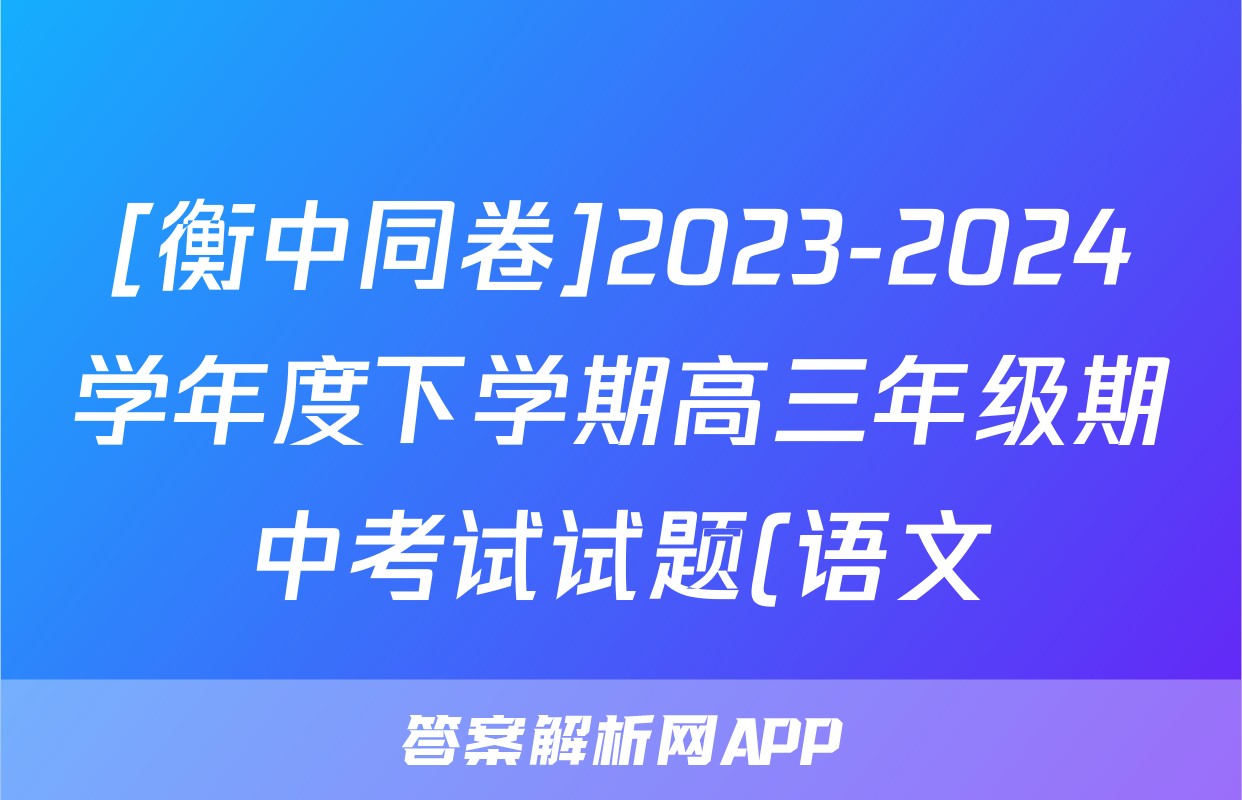 [衡中同卷]2023-2024学年度下学期高三年级期中考试试题(语文)正在持续更新,目前2026卷行天下答案网为大家整理了相关试题及答案,供大家查缺补漏,高效提升成绩。