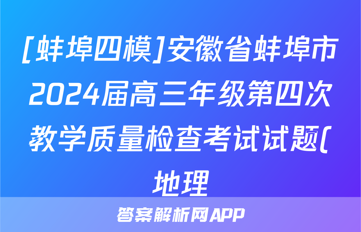[蚌埠四模]安徽省蚌埠市2024届高三年级第四次教学质量检查考试试题(地理)正在持续更新,目前2026卷行天下答案网为大家整理了相关试题及答案,供大家查缺补漏,高效提升成绩。