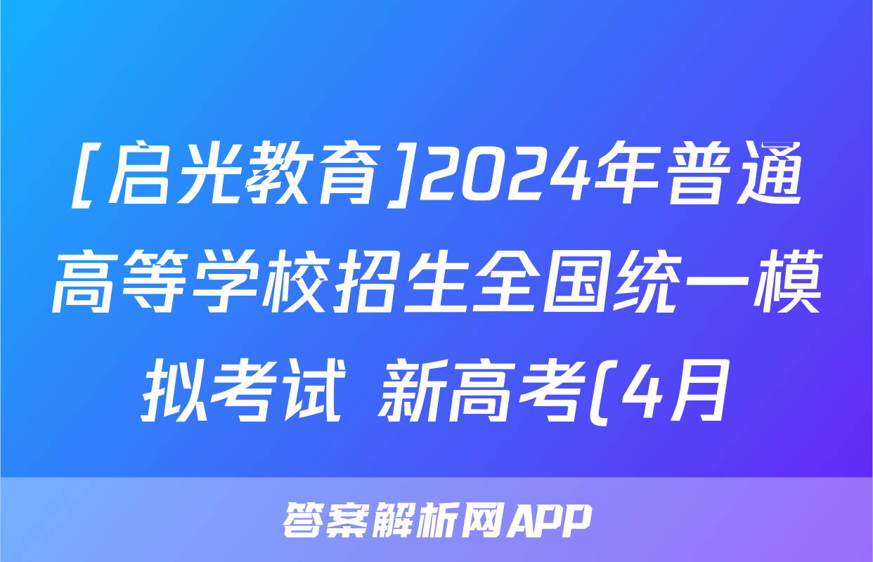 [启光教育]2024年普通高等学校招生全国统一模拟考试 新高考(4月)试题(英语)正在持续更新,目前2026卷行天下答案网为大家整理了相关试题及答案,供大家查缺补漏,高效提升成绩。