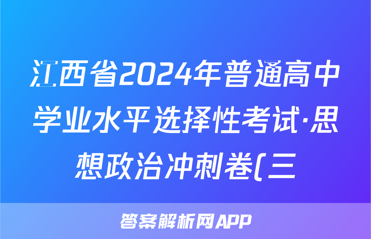 江西省2024年普通高中学业水平选择性考试·思想政治冲刺卷(三)3[24·(新高考)CCJ·思想政治·JX]答案正在持续更新,目前2026卷行天下答案网为大家整理了相关试题及答案,供大家查缺补漏,高效提升成绩。