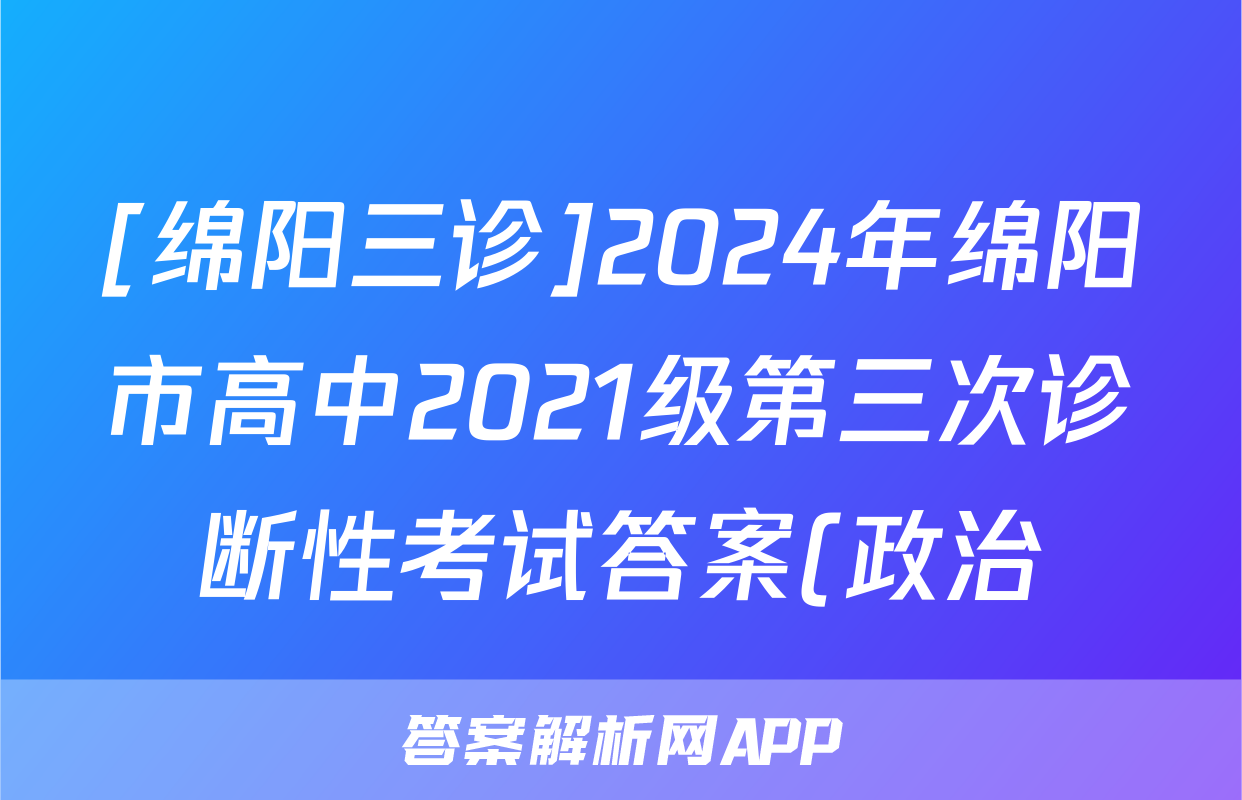 [绵阳三诊]2024年绵阳市高中2021级第三次诊断性考试答案(政治)正在持续更新,目前2026卷行天下答案网为大家整理了相关试题及答案,供大家查缺补漏,高效提升成绩。