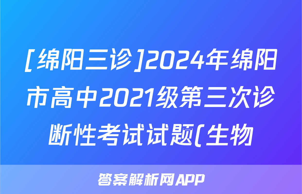 [绵阳三诊]2024年绵阳市高中2021级第三次诊断性考试试题(生物)正在持续更新,目前2026卷行天下答案网为大家整理了相关试题及答案,供大家查缺补漏,高效提升成绩。