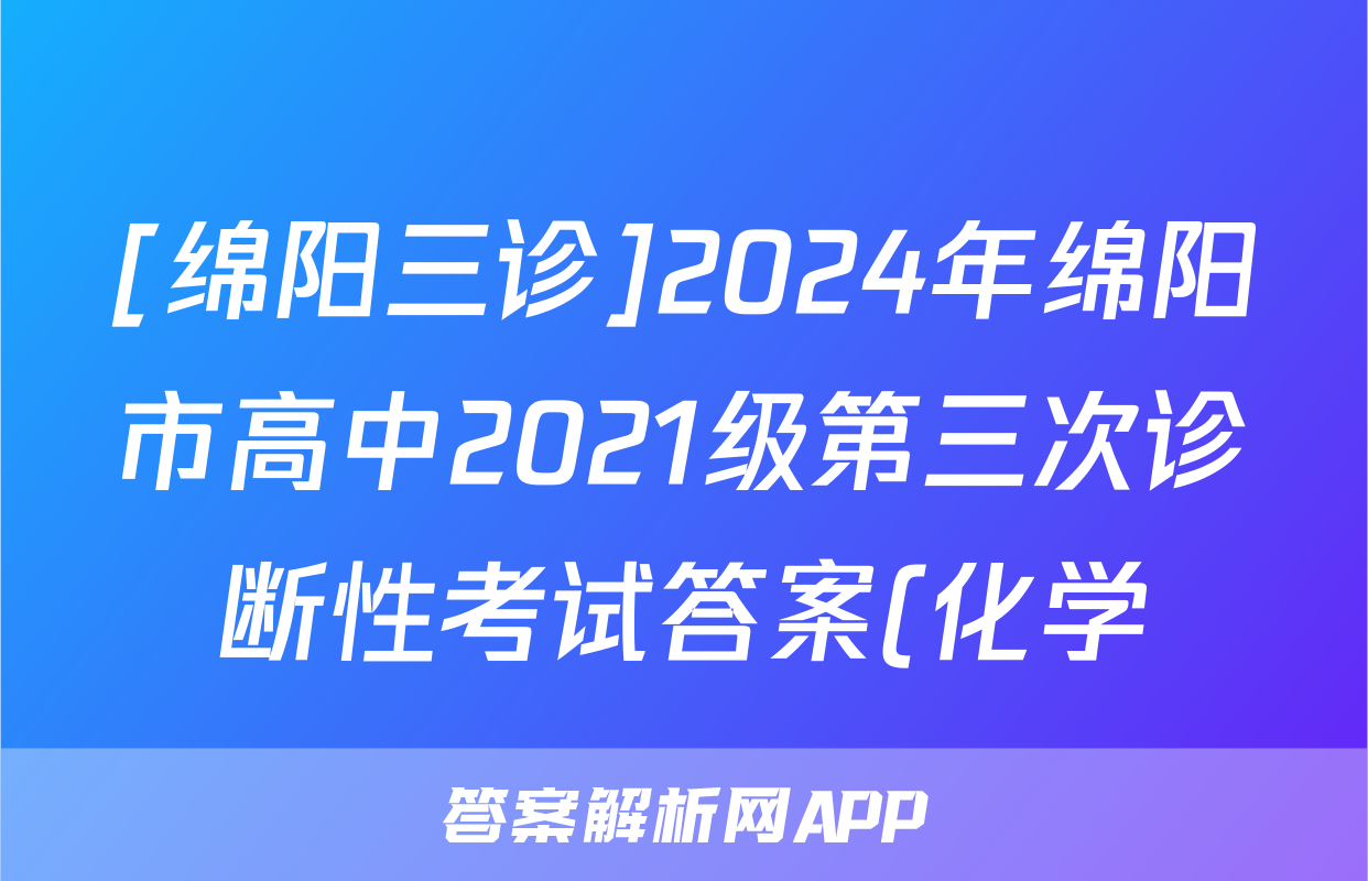 [绵阳三诊]2024年绵阳市高中2021级第三次诊断性考试答案(化学)正在持续更新,目前2026卷行天下答案网为大家整理了相关试题及答案,供大家查缺补漏,高效提升成绩。