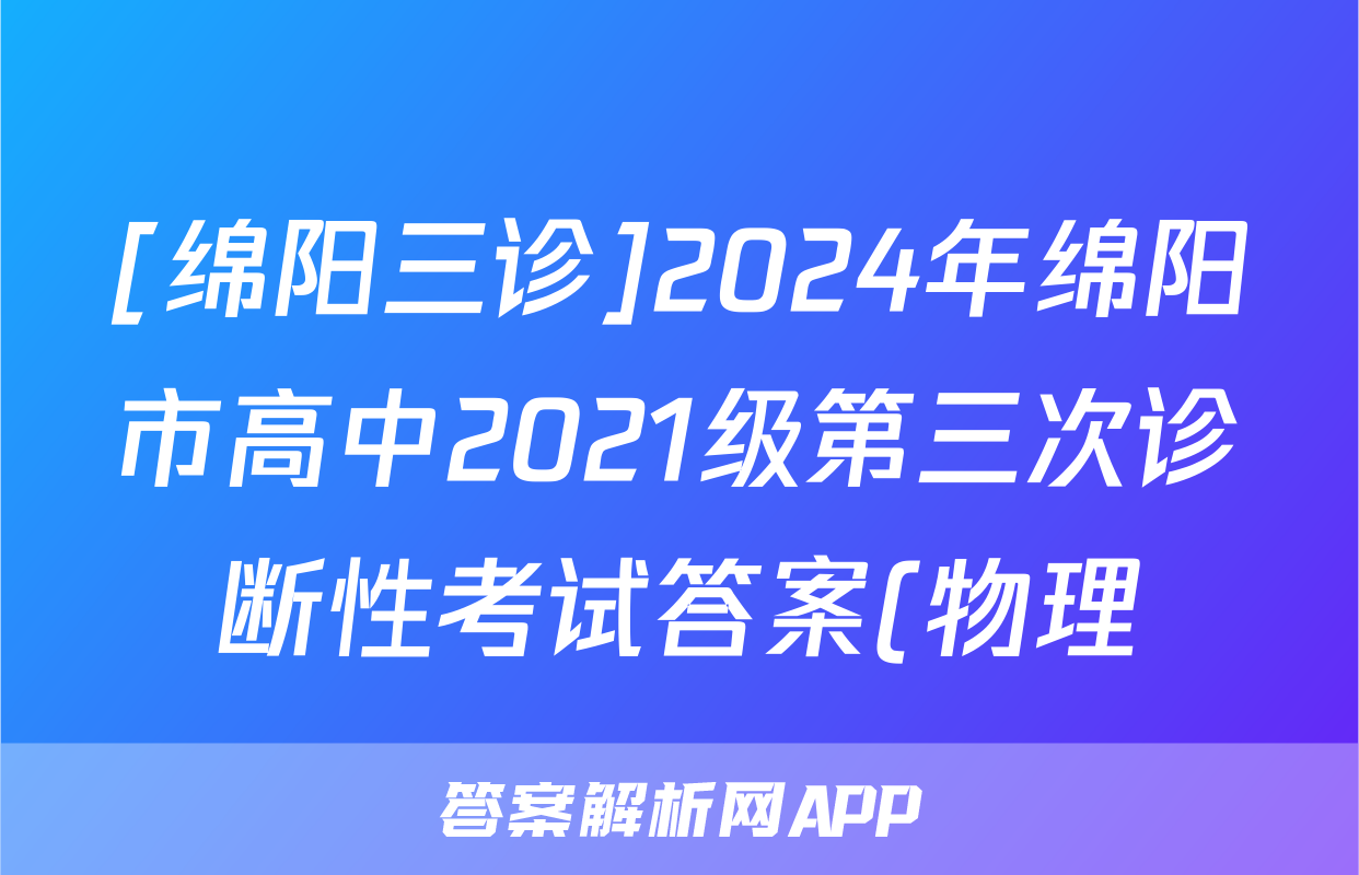 [绵阳三诊]2024年绵阳市高中2021级第三次诊断性考试答案(物理)正在持续更新,目前2026卷行天下答案网为大家整理了相关试题及答案,供大家查缺补漏,高效提升成绩。