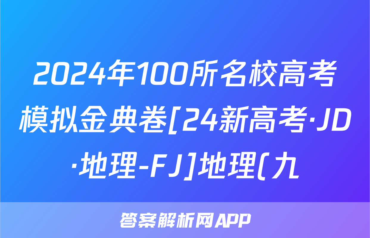 2024年100所名校高考模拟金典卷[24新高考·JD·地理-FJ]地理(九)9答案正在持续更新,目前2026卷行天下答案网为大家整理了相关试题及答案,供大家查缺补漏,高效提升成绩。