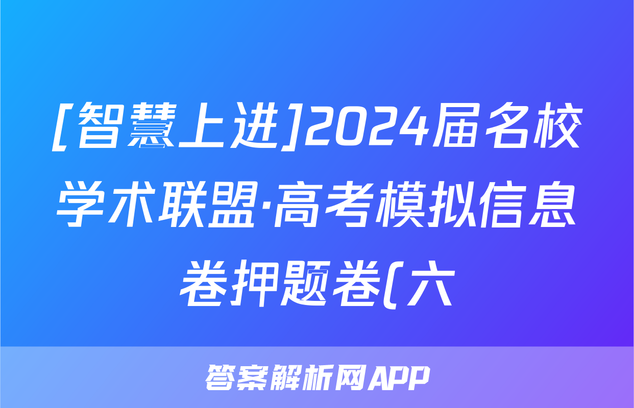 [智慧上进]2024届名校学术联盟·高考模拟信息卷押题卷(六)6地理·HN试题正在持续更新,目前2026卷行天下答案网为大家整理了相关试题及答案,供大家查缺补漏,高效提升成绩。