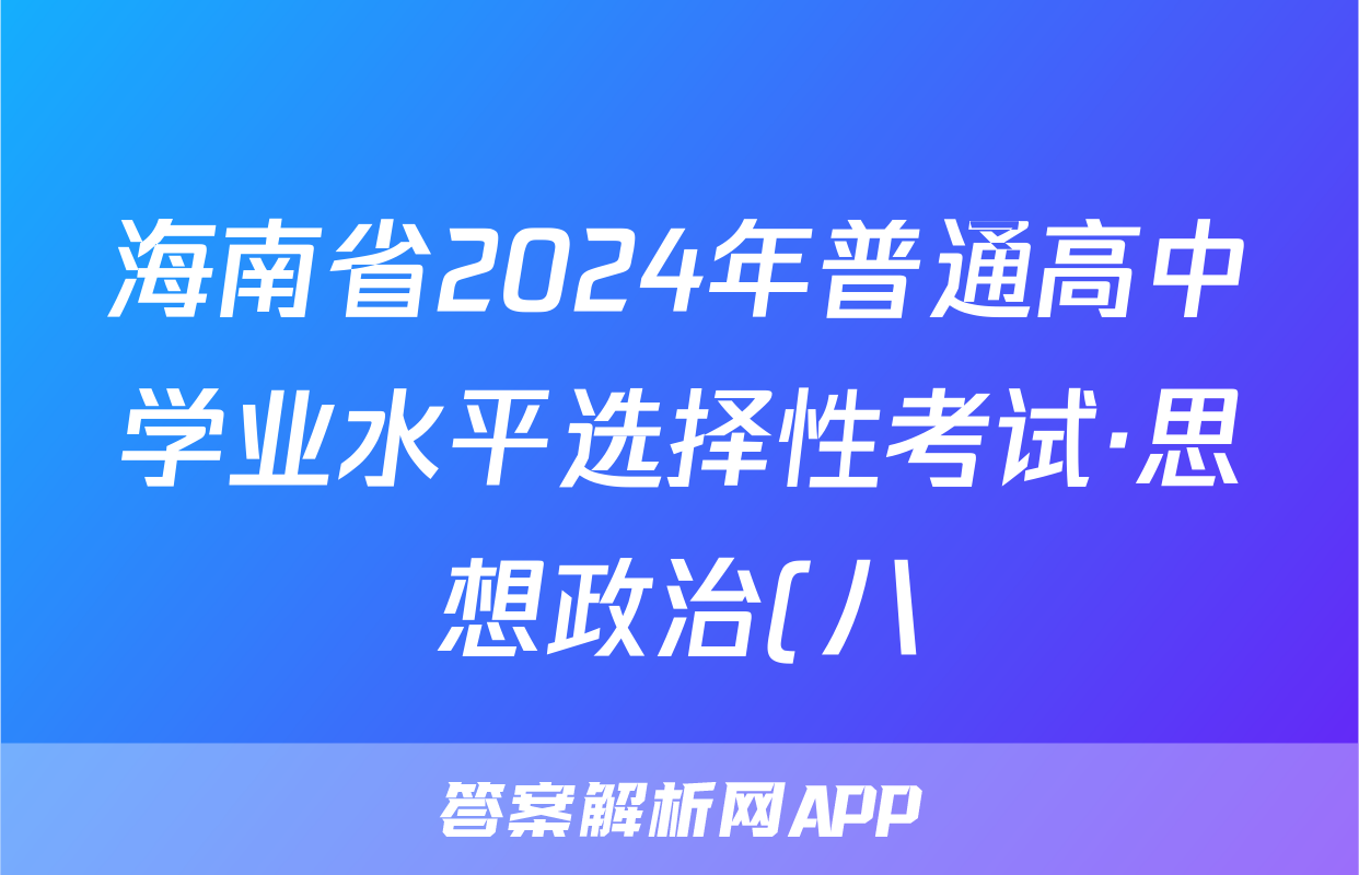 海南省2024年普通高中学业水平选择性考试·思想政治(八)8[24·(新高考)ZX·MNJ·思想政治·HAIN]答案正在持续更新,目前2026卷行天下答案网为大家整理了相关试题及答案,供大家查缺补漏,高效提升成绩。