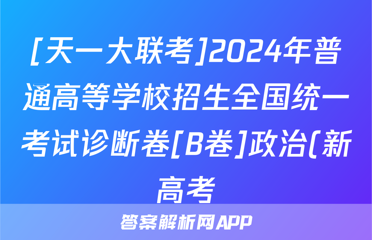 [天一大联考]2024年普通高等学校招生全国统一考试诊断卷[B卷]政治(新高考)答案正在持续更新,目前2026卷行天下答案网为大家整理了相关试题及答案,供大家查缺补漏,高效提升成绩。