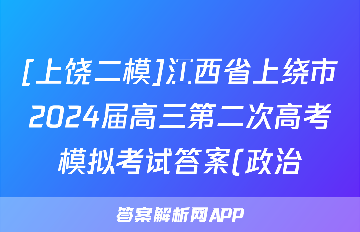 [上饶二模]江西省上绕市2024届高三第二次高考模拟考试答案(政治)正在持续更新,目前2026卷行天下答案网为大家整理了相关试题及答案,供大家查缺补漏,高效提升成绩。