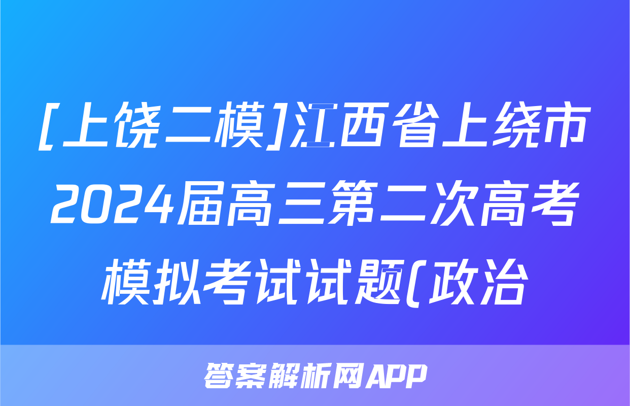 [上饶二模]江西省上绕市2024届高三第二次高考模拟考试试题(政治)正在持续更新,目前2026卷行天下答案网为大家整理了相关试题及答案,供大家查缺补漏,高效提升成绩。