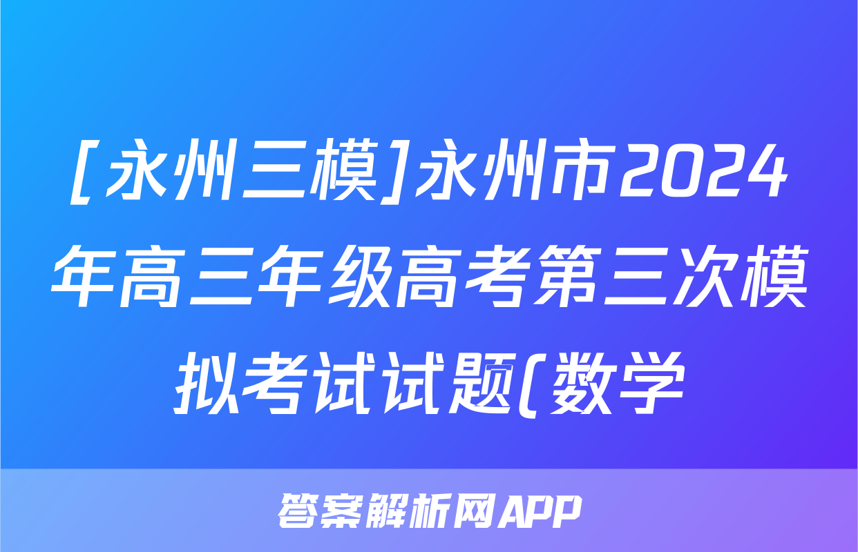 [永州三模]永州市2024年高三年级高考第三次模拟考试试题(数学)正在持续更新,目前2026卷行天下答案网为大家整理了相关试题及答案,供大家查缺补漏,高效提升成绩。