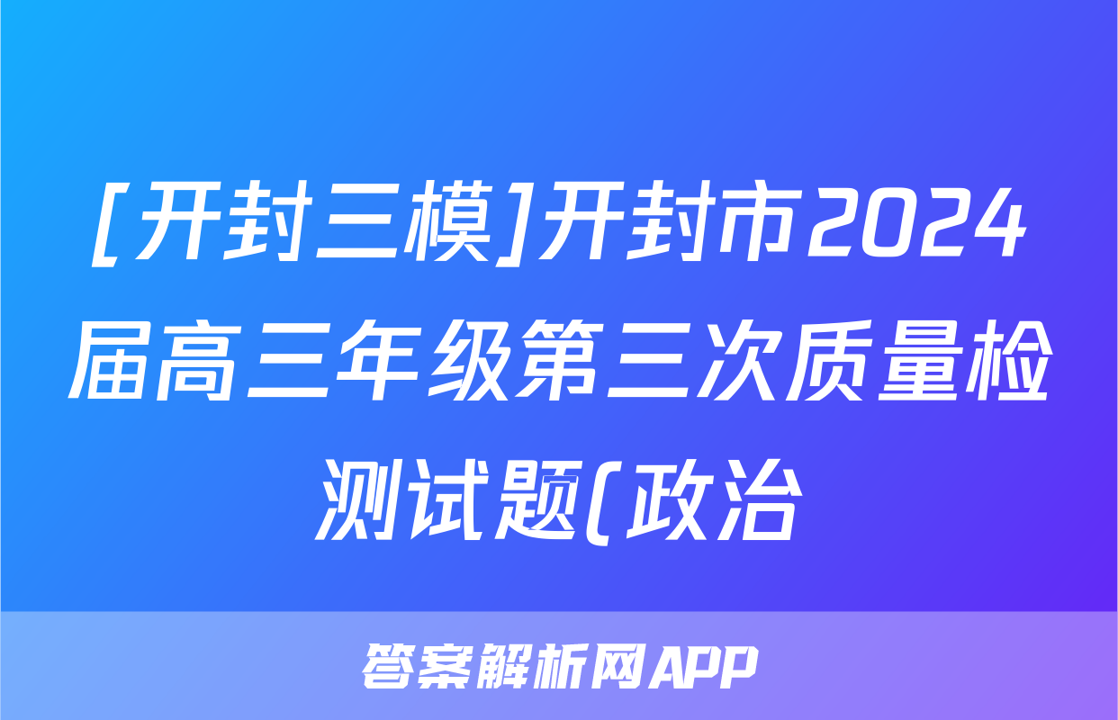 [开封三模]开封市2024届高三年级第三次质量检测试题(政治)正在持续更新,目前2026卷行天下答案网为大家整理了相关试题及答案,供大家查缺补漏,高效提升成绩。