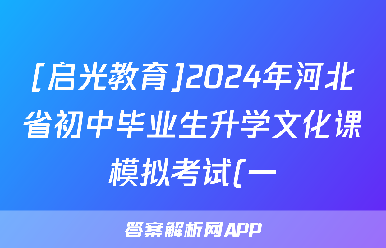[启光教育]2024年河北省初中毕业生升学文化课模拟考试(一)1试卷答案答案(历史)正在持续更新,目前2026卷行天下答案网为大家整理了相关试题及答案,供大家查缺补漏,高效提升成绩。