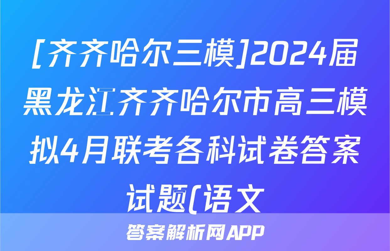 [齐齐哈尔三模]2024届黑龙江齐齐哈尔市高三模拟4月联考各科试卷答案试题(语文)正在持续更新,目前2026卷行天下答案网为大家整理了相关试题及答案,供大家查缺补漏,高效提升成绩。