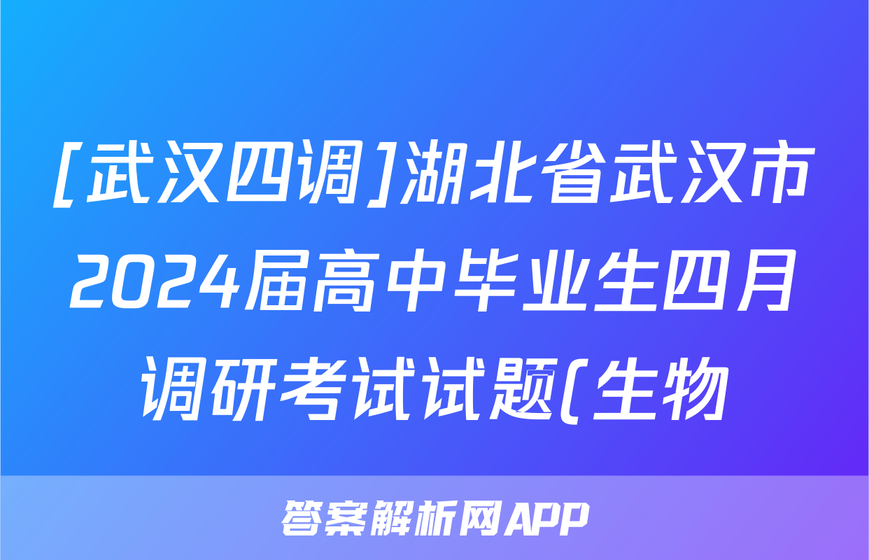 [武汉四调]湖北省武汉市2024届高中毕业生四月调研考试试题(生物)正在持续更新,目前2026卷行天下答案网为大家整理了相关试题及答案,供大家查缺补漏,高效提升成绩。