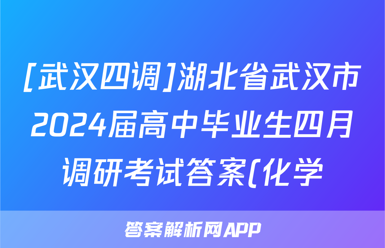[武汉四调]湖北省武汉市2024届高中毕业生四月调研考试答案(化学)正在持续更新,目前2026卷行天下答案网为大家整理了相关试题及答案,供大家查缺补漏,高效提升成绩。
