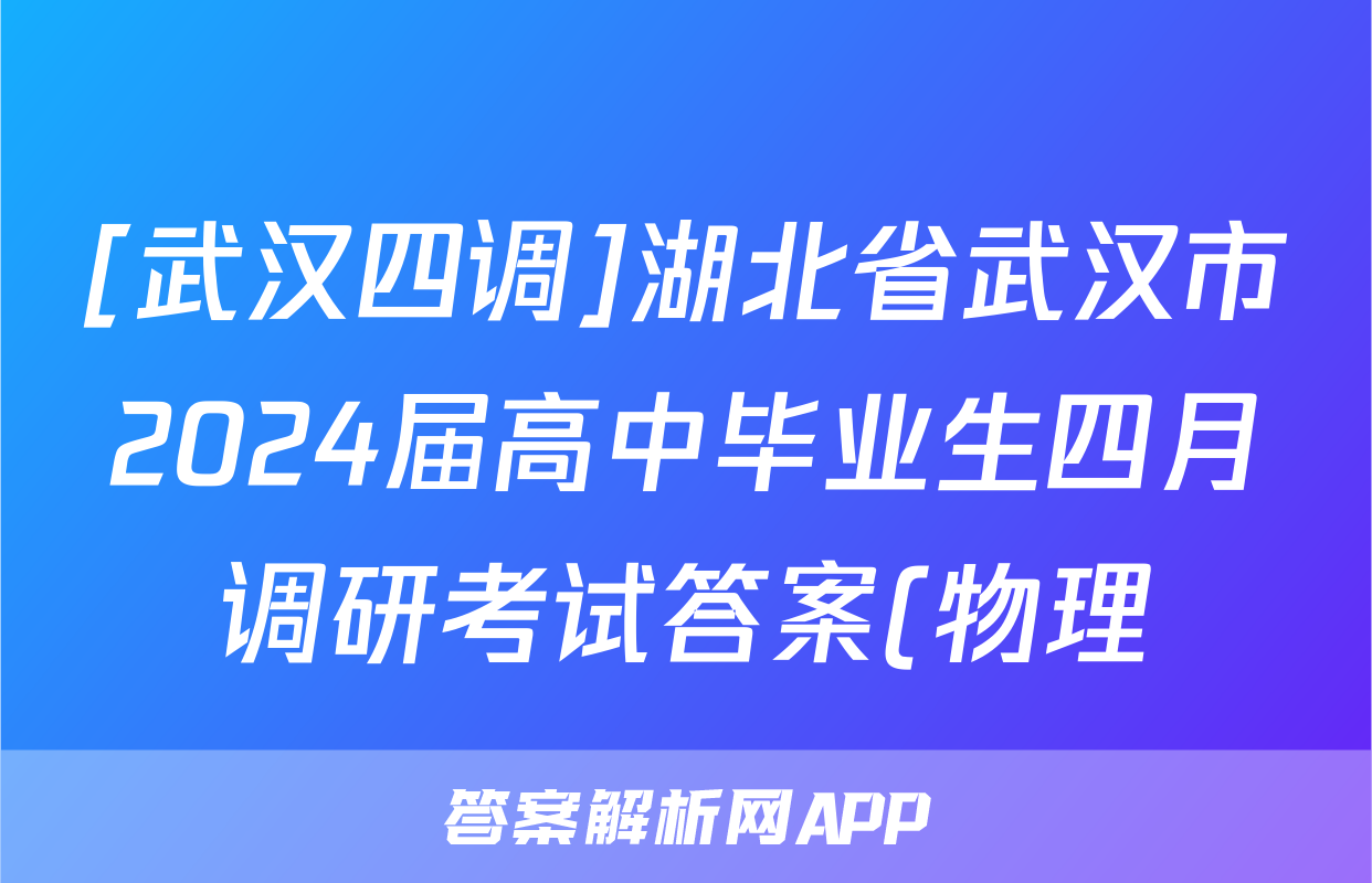 [武汉四调]湖北省武汉市2024届高中毕业生四月调研考试答案(物理)正在持续更新,目前2026卷行天下答案网为大家整理了相关试题及答案,供大家查缺补漏,高效提升成绩。