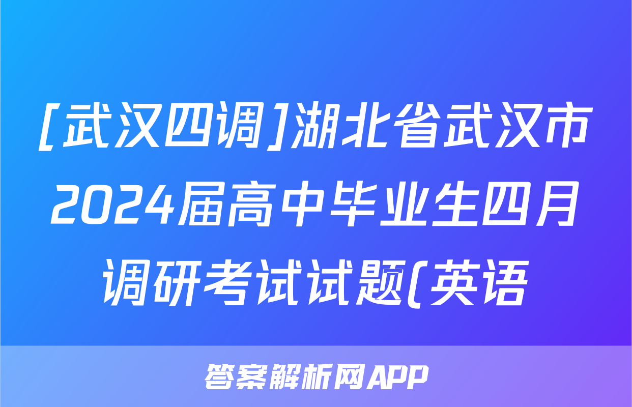 [武汉四调]湖北省武汉市2024届高中毕业生四月调研考试试题(英语)正在持续更新,目前2026卷行天下答案网为大家整理了相关试题及答案,供大家查缺补漏,高效提升成绩。