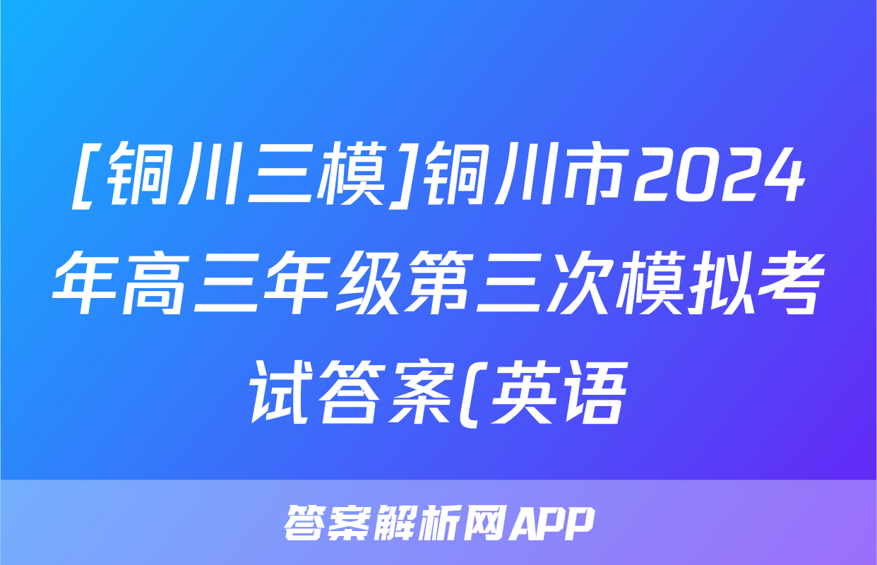 [铜川三模]铜川市2024年高三年级第三次模拟考试答案(英语)正在持续更新,目前2026卷行天下答案网为大家整理了相关试题及答案,供大家查缺补漏,高效提升成绩。