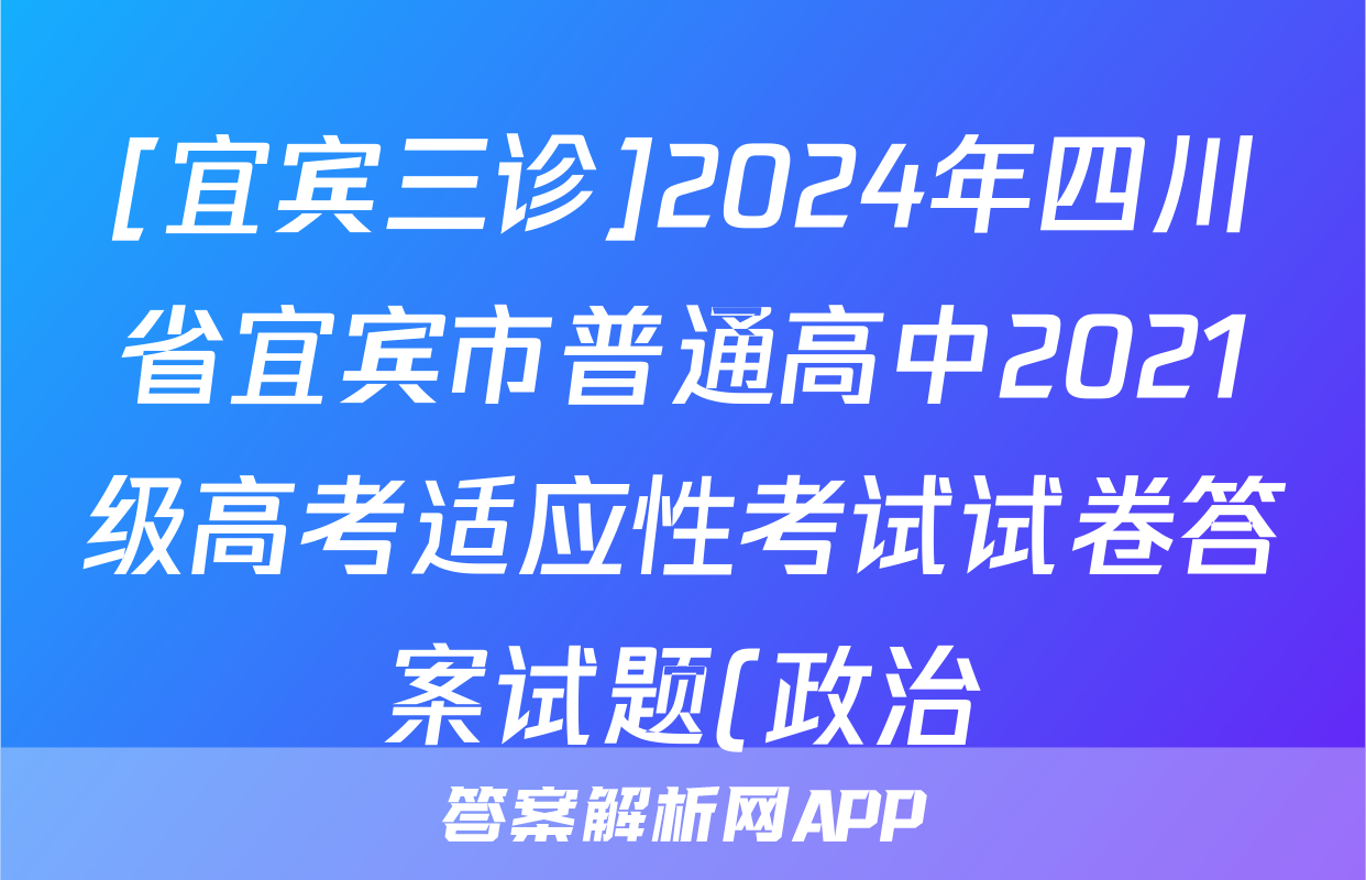 [宜宾三诊]2024年四川省宜宾市普通高中2021级高考适应性考试试卷答案试题(政治)正在持续更新,目前2026卷行天下答案网为大家整理了相关试题及答案,供大家查缺补漏,高效提升成绩。