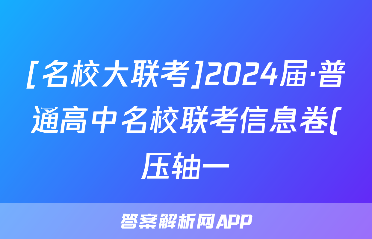 [名校大联考]2024届·普通高中名校联考信息卷(压轴一)试题(生物)正在持续更新,目前2026卷行天下答案网为大家整理了相关试题及答案,供大家查缺补漏,高效提升成绩。