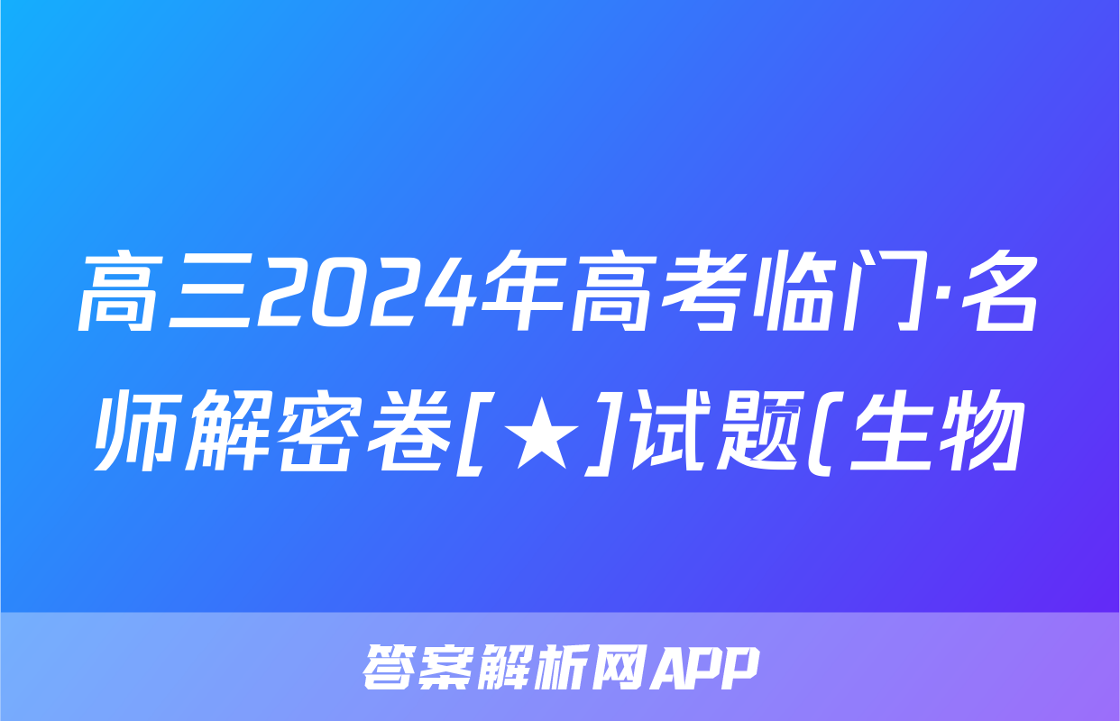 高三2024年高考临门·名师解密卷[★]试题(生物)正在持续更新,目前2026卷行天下答案网为大家整理了相关试题及答案,供大家查缺补漏,高效提升成绩。